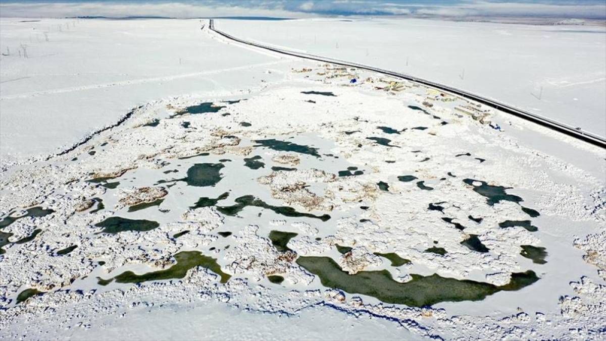 Endemik bitki türlerinin bulunduğu ve 2016'dan bu yana "ulusal öneme haiz sulak alan" olarak koruma altında bulunan gölün çevresi de beyaza büründü.