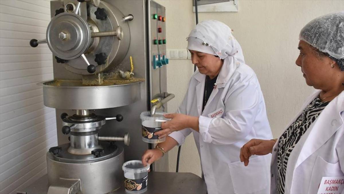 Afyonkarahisar'ın Başmakçı ilçesinde kooperatif bünyesinde çalışan kadınlar, ürettikleri doğal tahin ve köpük helvanın satışıyla kazanç sağlıyor.