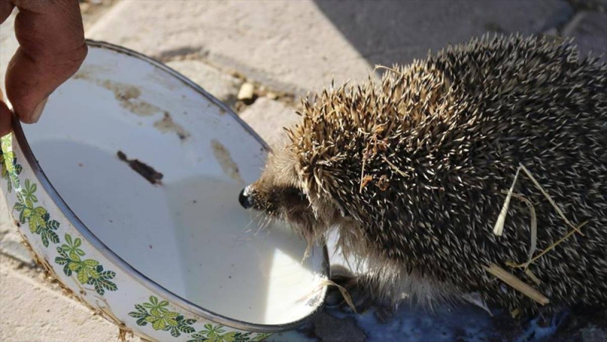 Aksaray'da bir çiftçi her sabah ahırına gelen kirpiyi sütle besliyor