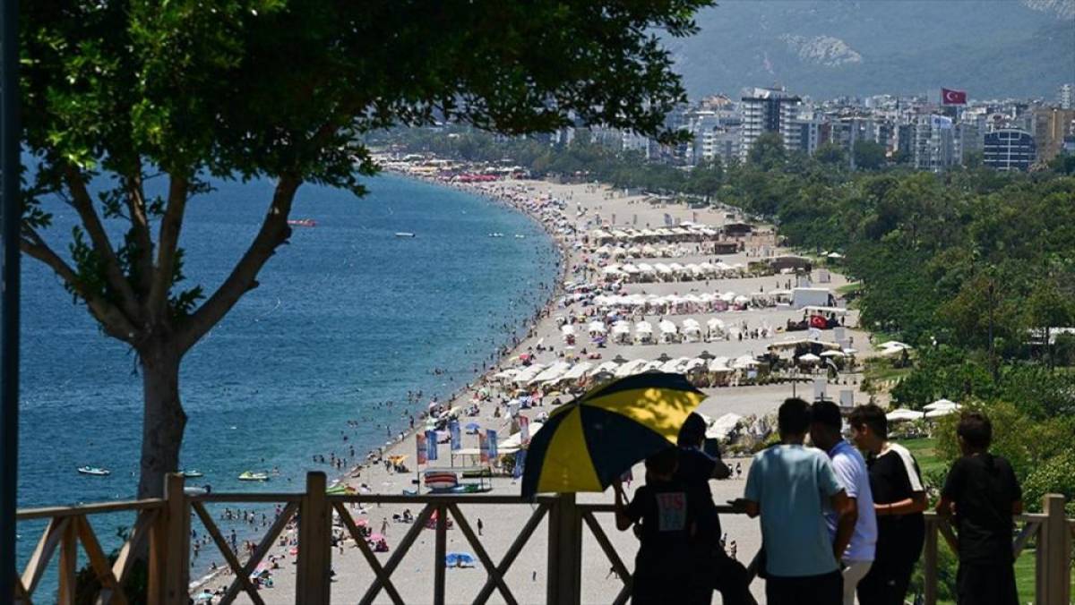 Antalya'da yüzde 76'ya ulaşan nemden ve yüksek sıcaklıktan bunalanlar sahilleri doldurdu.