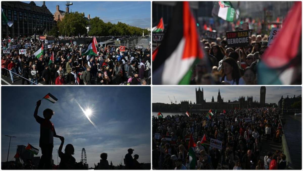 ANKARA (AA) - Filistin Dayanışma Kampanyası (PSC) öncülüğünde başkentteki Embankment istasyonu yakınlarında toplanan yüz binlerce kişi, ellerinde taşıdıkları Filistin bayrakları ve dövizlerle Başbakanlık Ofisi 10 Numara'nın bulunduğu Downing Sokağı'na yürüdü.