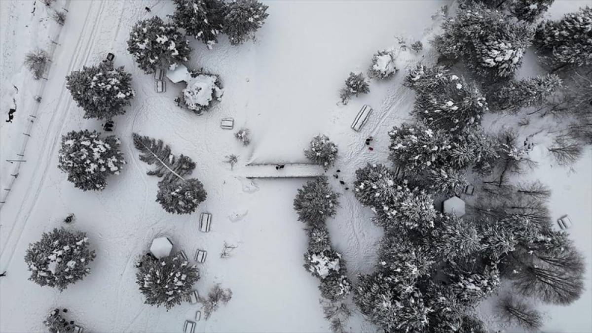 Öte yandan Domaniç Dağları'nın karla kaplı manzarası dronla da görüntülendi.