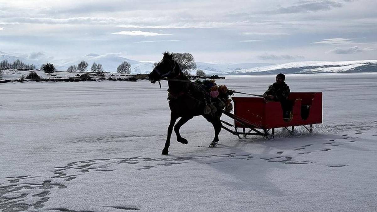 ARDAHAN (AA) - Doğu Anadolu Bölgesi'nin önemli kış turizmi destinasyonları arasında yer alan, Ardahan ile Kars sınırındaki Çıldır Gölü, kış aylarında yüzeyinin tamamen donmasıyla cazibe merkezi oluyor. Çeşitli illerden bölgeye gelen yerli ve yabancı turistler, atların çektiği kızaklara binerek göl üzerinde tur atıyor.
