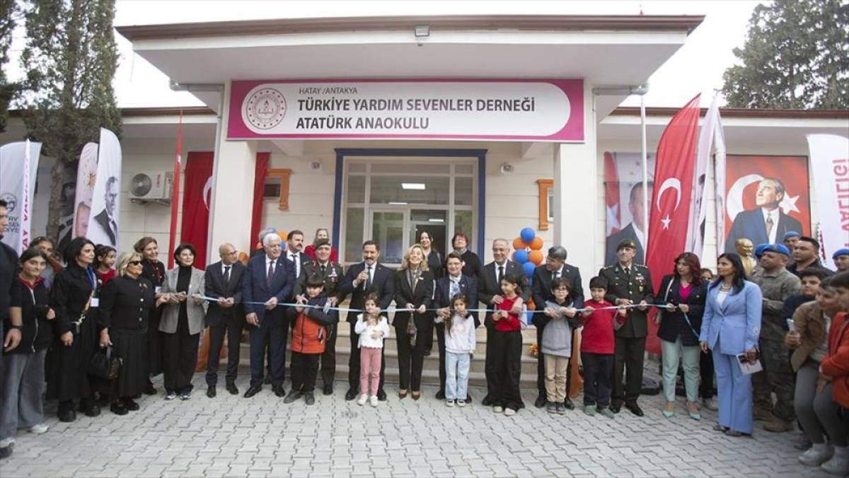 HATAY (AA) - Türkiye Yardım Sevenler Derneğince, Kuzeytepe Mahallesi'nde yaptırılan 4 derslikli Atatürk Anaokulu'nun açılışı, Vali Mustafa Masatlı, İl Milli Eğitim Müdürü Harun Tüysüz, Garnizon Komutanı Tuğgeneral Ali Mete ve derneğin başkanı Dilek Bayazıt'ın yanı sıra yardımseverlerin katılımıyla gerçekleşti.