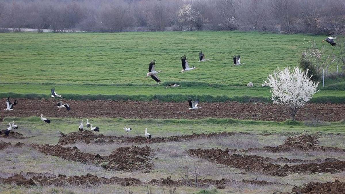 Türkiye üzerinden geçen göç rotasını kullanan leylekler, Trakya'da kısa süreli konaklayarak yolculuklarını sürdürüyor.