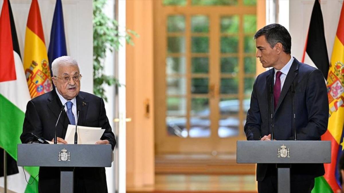 Madrid'deki Başbakanlık konutu Moncloa'da yapılan Sanchez-Abbas görüşmesinin ardından iki lider soru almadan, basına açıklama yaptı.
