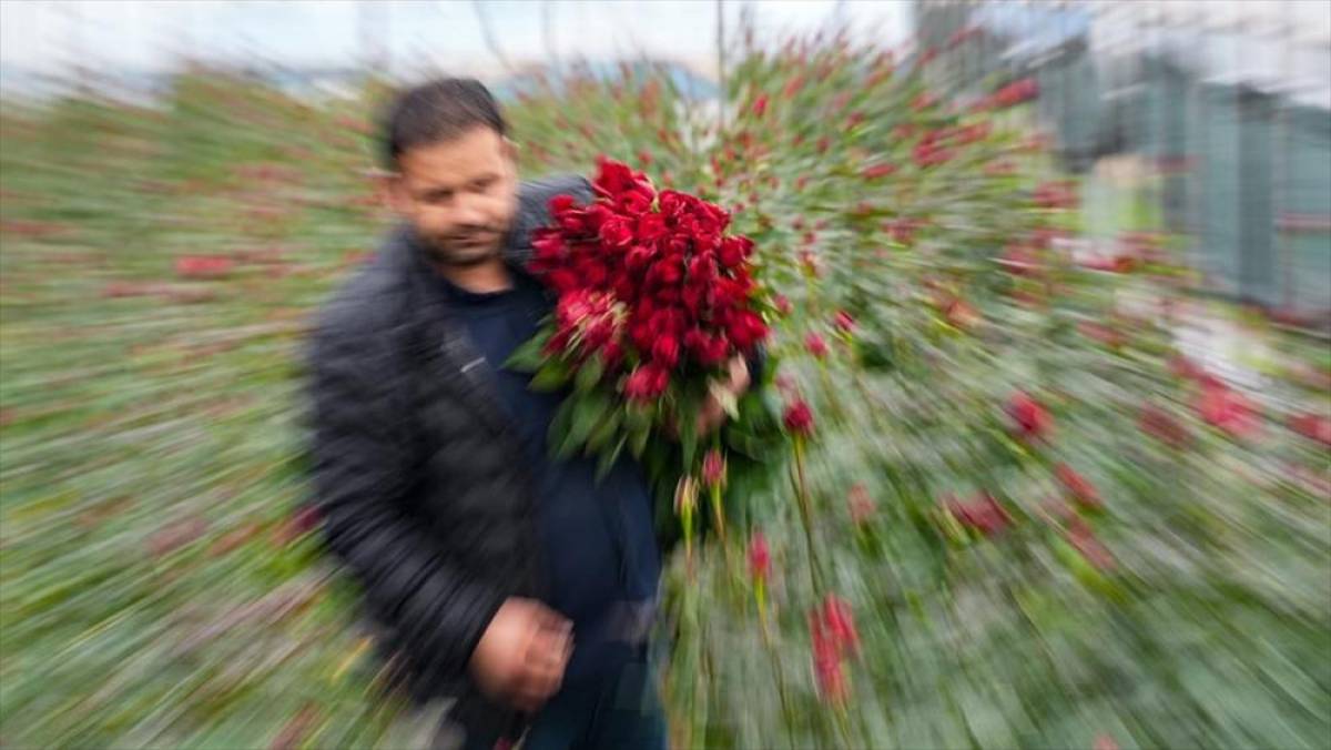 Türkiye'de kesme gül üretiminde ilk sırada yer alan İzmir'in Menderes ilçesindeki seralarda 14 Şubat Sevgililer Günü öncesinde hasat hız kazandı.