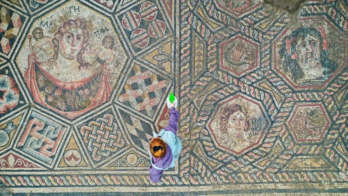 "Nar ve sarmaşık yapraklarıyla çevrilmiş bordür"Kazı ekibinde yer alan arkeolog Yusuf Kahveci, AA muhabirine, 2014 yılında kanalizasyon çalışması yapılırken mozaikli bir tabanla karşılaşıldığını, bu tabanın yol ve yanındaki arsada devam ettiğinin belirlenmesi üzerine kamulaştırma çalışmalarına başlandığını söyledi.