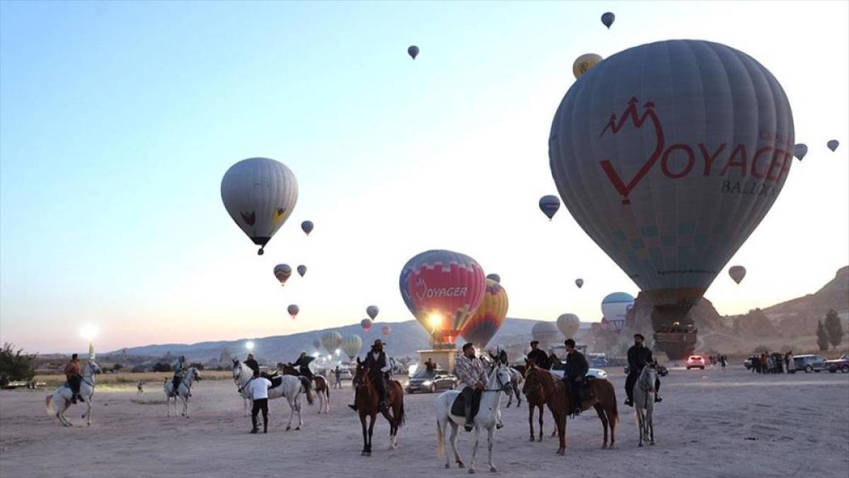 NEVŞEHIR (AA) - Nevşehir Valiliği himayesinde, Göreme Belediyesi ev sahipliğinde önceki gün başlayan etkinlik kapsamında, peribacalarının sıcak hava balonlarıyla bütünleştiği manzarada atlı tur gerçekleştirildi.