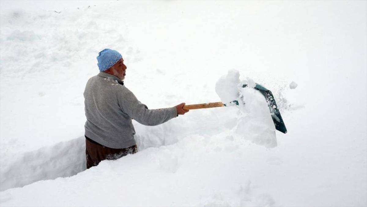 Kar kalınlığının bir metreyi aştığı dağ köylerinde vatandaşlar kürekle mesaide
