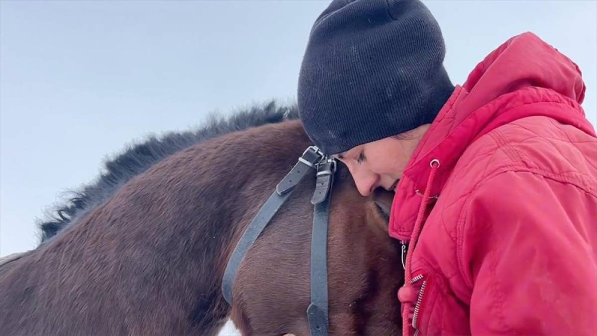 Kars’ın Karacaören köyünde yaşayan 29 yaşındaki Melisa Albug, tayken alıp büyüttüğü atı "Torun"u karlı arazide yarışlara hazırlıyor.
