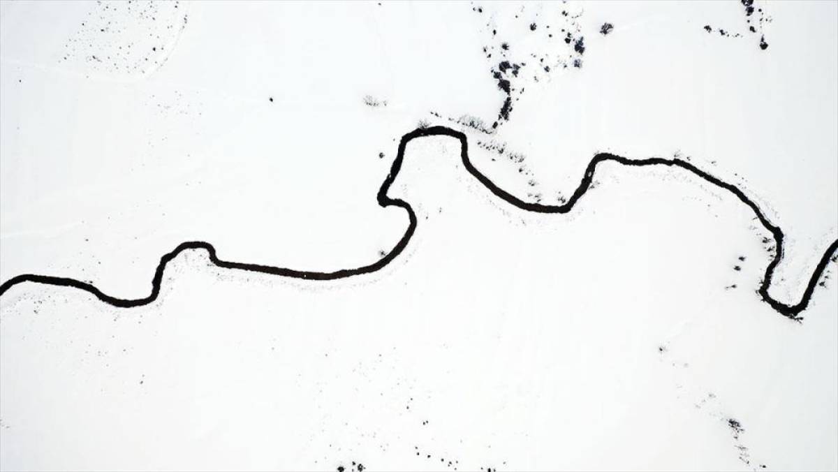 Yağışın ardından beyaza bürünen doğanın ortasından akan suyun oluşturduğu kıvrımlar, seyrine doyumsuz manzara sundu.