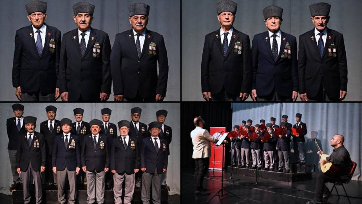 Kıbrıs gazilerinden oluşan koro kahramanlık ezgilerini seslendiriyor