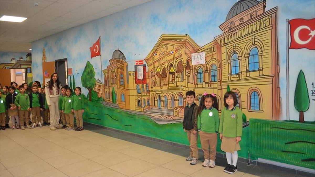 Kocaeli'nin Çayırova ilçesindeki bir ilkokulda koridorlara çizilen resimlerle, öğrencilerin hayat bilgisinde yaşama, tarihe ve kurallara dair öğrendikleri bilgileri pekiştirmeleri amaçlanıyor.