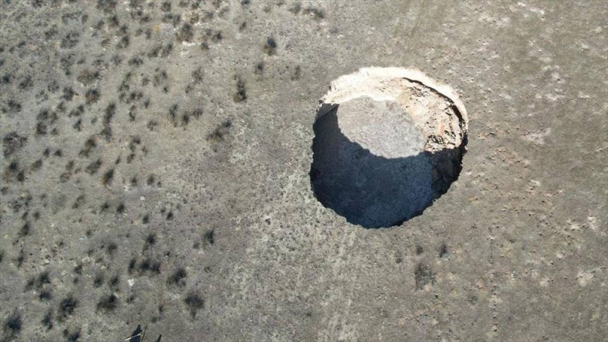 KONYA (AA) - Sürüsünü araziye götüren Veysel Kaplan, Akıncılar Mahallesi'ndeki merada 50 metre çapı ve 7 metre derinliği ölçülen obruğu fark ederek, durumu yetkililere bildirdi.