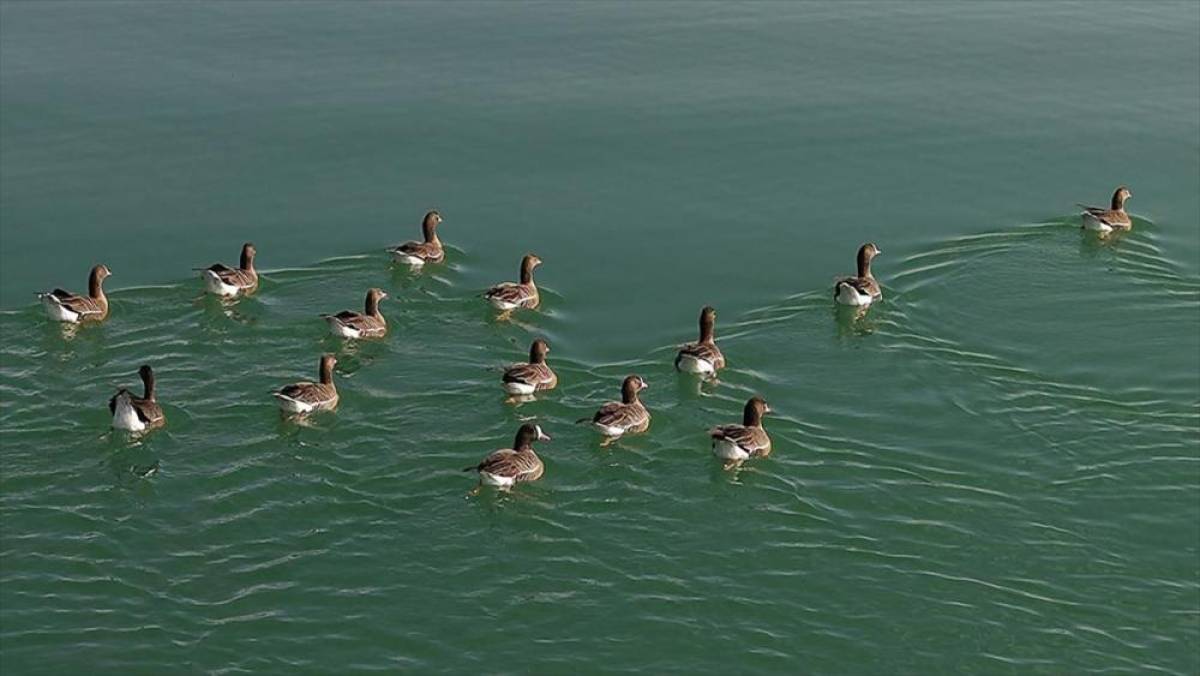 Yaban hayvanlarının daha güvenli ortamda üreme alanı bulduğu göl, yaz mevsimi boyunca konaklayan flamingoların yanı sıra bugünlerde binlerce yaban kazına da ev sahipliği yapıyor.