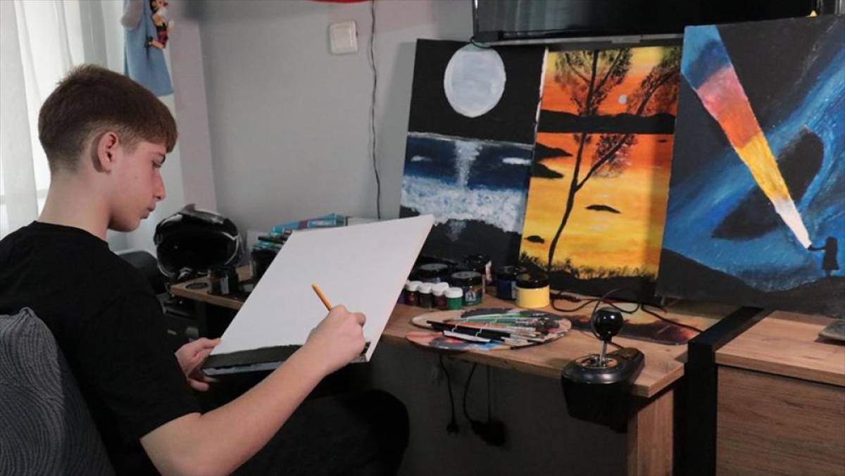Kocaeli'de yaşayan 14 yaşındaki Eymen Çetin, Liselere Geçiş Sınavına (LGS) hazırlık sürecinde sınav kaygısını resim yaparak azaltıyor.