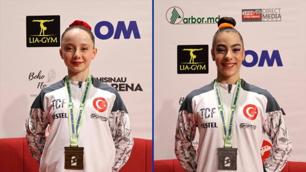 Aerobik Cimnastik Kişinev Kupası'na katılan milli sporcular, 12-14 yaş kategorisinde birer altın ve gümüş madalya kazandı.