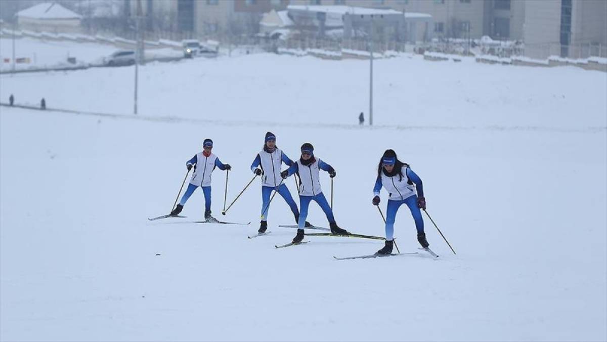 Muş'ta kayakcılar, etkili olan soğuk havaya rağmen antrenmanlarını aksatmayarak yarışlar için hazırlıklarını sürdürüyor.