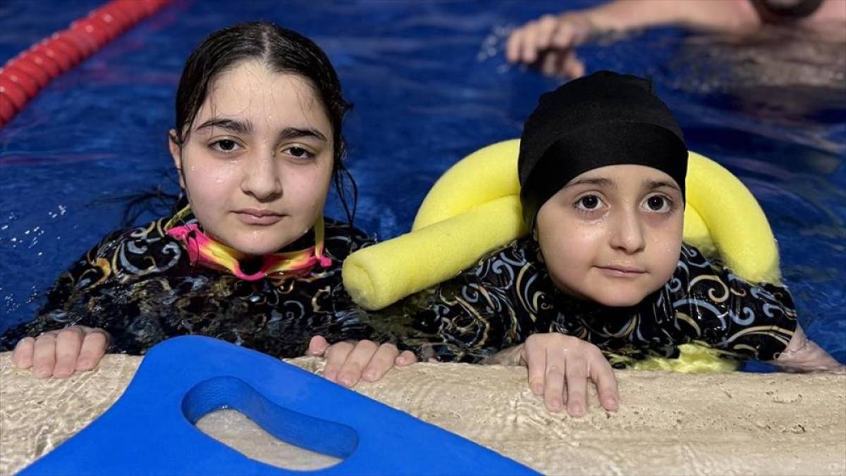Amine'nin 10 yaşındaki ablası Hümeyra Dorceylan da yüzme kursuna katılarak kardeşine destek oluyor.