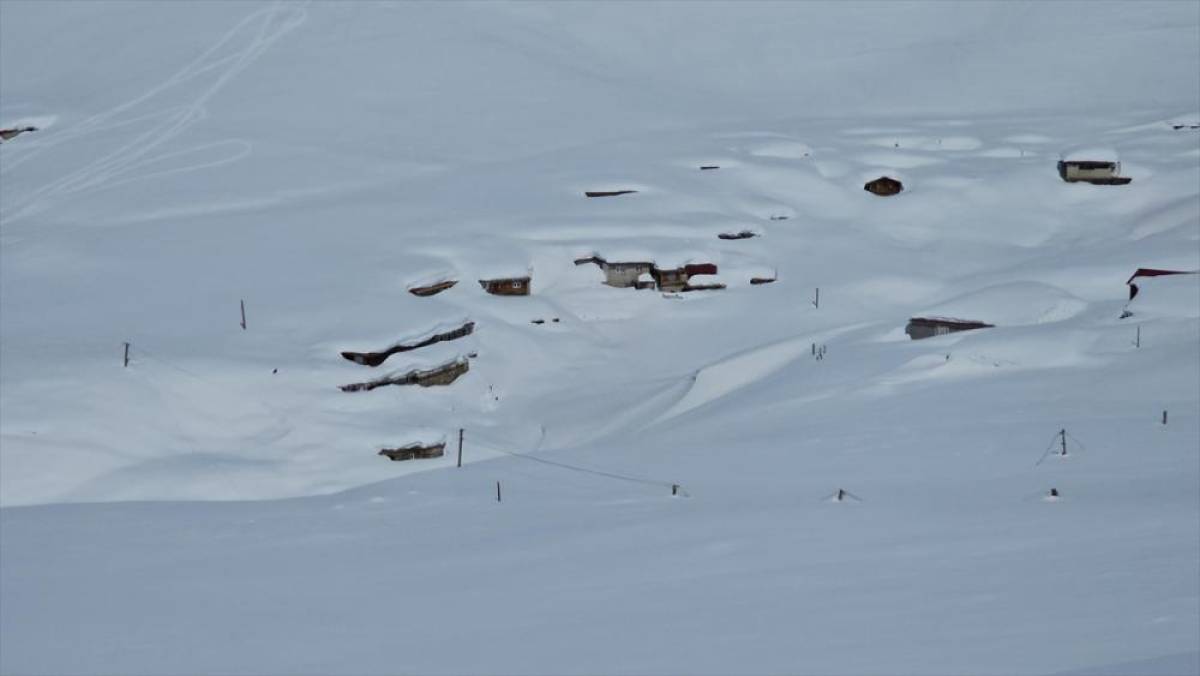 Rize'nin Çamlıhemşin ilçesinde yüksek kesimlerde etkisini gösteren kar yağışının ardından yayla evleri beyaz örtünün altında kaldı.