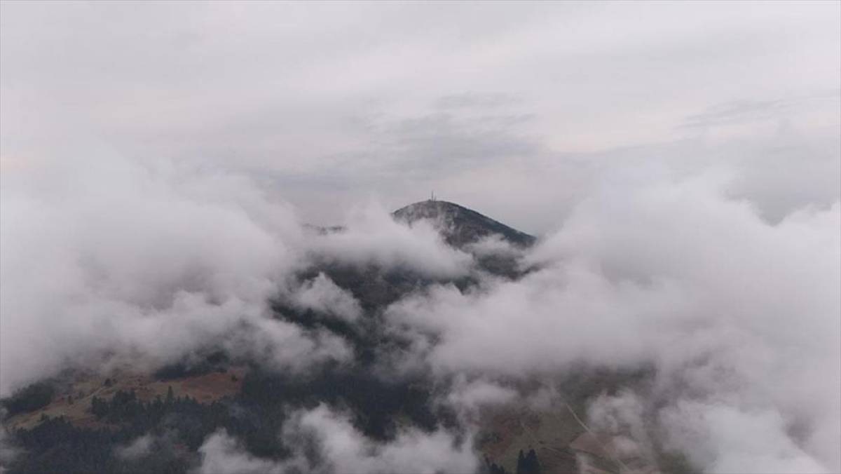 Dağdaki "sis denizi" dronla görüntülendi.