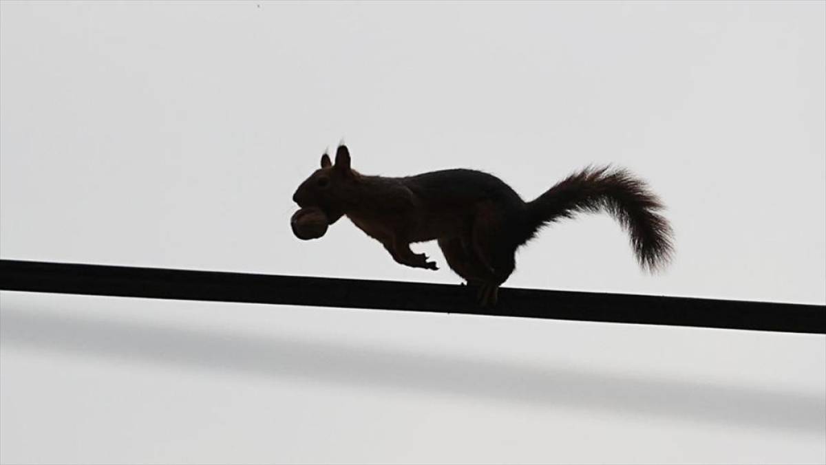 Samsun'un Alaçam ilçesinde sonbahar güzelliklerine sincaplar eşlik ediyor