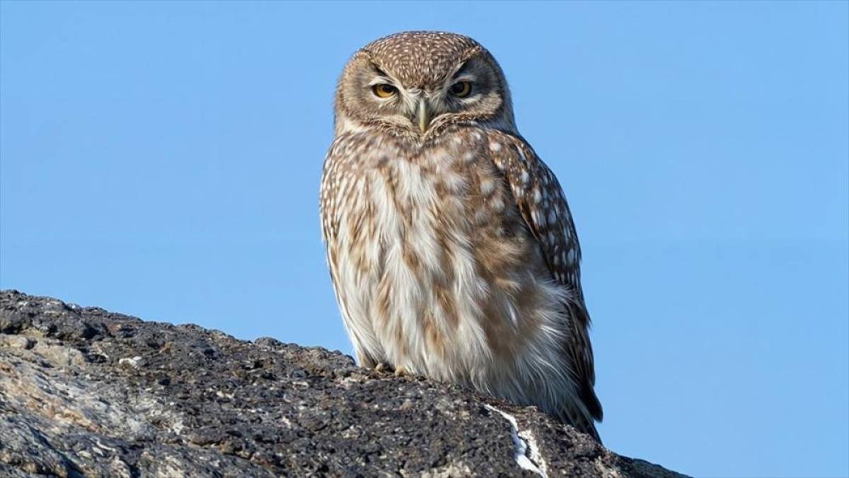 IĞDIR (AA) - Yurdun en yüksek noktası olan 5 bin 137 metre rakımlı Ağrı Dağı'nın eteklerindeki alanlar birçok yaban hayvanının yanı sıra kuşlara da ev sahipliği yapıyor.Burada yaşayan göçmen ve yerel kuş türleri arasında, en küçük baykuş türü olarak bilinen kukumav (Athene noctua) da yaşıyor.Alanda çalışma yapan Anadolu Ajansı ekibi, doğal ortamındaki kayalıkların üstüne konan bir kukumavı görüntüledi.Yuvarlak suratıyla ilgi çeken kukumavın sempatik hareketleri kayda alındı.Muhabir: Hüseyin Yıldız