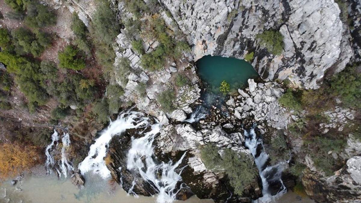 ANTALYA (AA) - Torosların zirvesinden doğan, Akdağ ve Geyik dağlarından gelen kar sularıyla beslenen yaklaşık 50 metre yüksekliğindeki Uçansu Şelalesi'nin etrafı, sarı, kahverengi ve yeşilin hakim olduğu farklı renklere büründü.