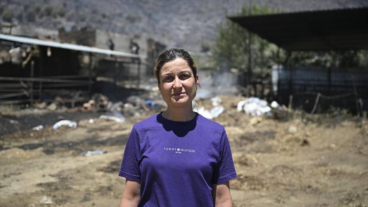 İzmir'in Ödemiş ilçesindeki orman yangınında evi ve ahırı yanan 40 yaşındaki Emine Uruf, gece boyu yangın bölgesinde kalan 4 ineğinin kurtulmasına sevindi.