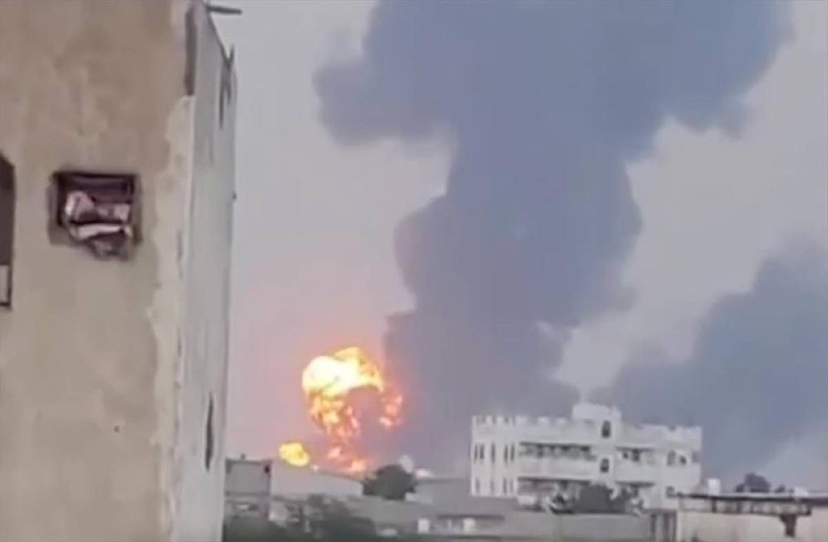 Sosyal medya aktivistlerinin yayınladığı görüntülerde, İsrail saldırısı nedeniyle Hudeyde limanında büyük bir yangın çıktığı görülüyor.