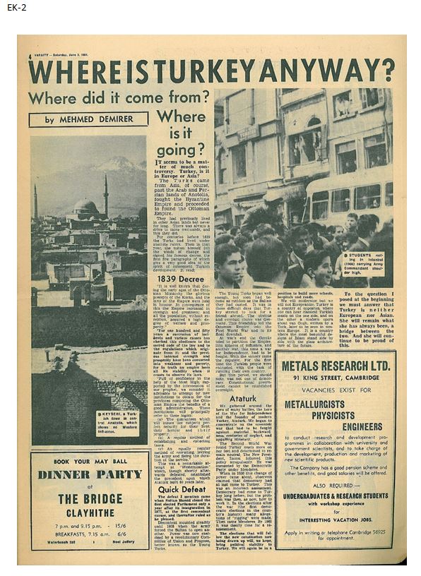 - 3 Haziran 1961 t. Cambridge Varsity yazımda belirttim, Türkiye bir köprüdür. (EK - 2)
