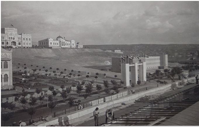 1930’ların sonuna ait aşağıdaki fotoğrafın üst kısmında gördüğünüz binalardan sağdaki Etnografya Müzesi ve soldaki de Halk Evi binasıdır. Aşağıdaki de onlardan daha sonra yapılan Kültür Bakanlığı binasıdır.